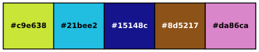 Here’s an example of generating a 5-color palette from the HSL colorspace: