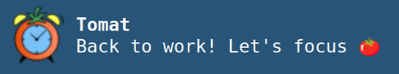 # Daemon started successfullyBy default, Tomat starts in a paused state, so to start your first Pomodoro session, just run: